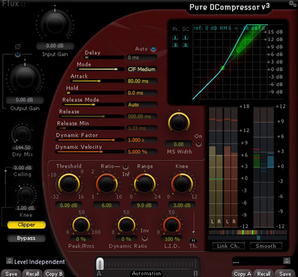 Two unique parameters provided are the "Dynamics Ratio" and the "Level Independent Detection" (L.I.D). Not only do they both use the signal levels as standard processor but they also include the dynamic range content of the signal.