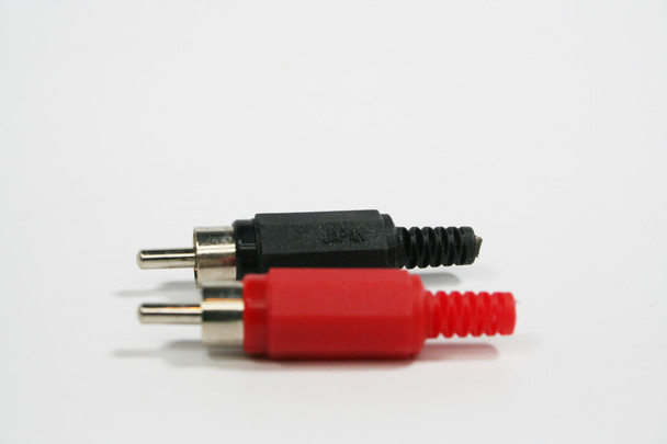 These connectors are designed to terminate unbalanced cables for mono applications. They are color-coded white and red to indicate left and right audio respectively.